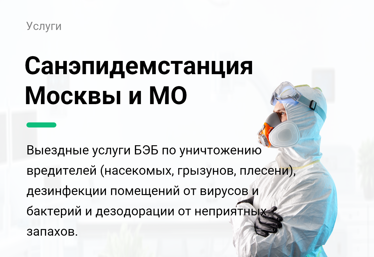 Компания ООО «БЮРО ЭПИДЕМИОЛОГИЧЕСКОЙ БЕЗОПАСНОСТИ» (БЭП) предлагает качественную услугу – дезинфекция помещений в Москве и МО с честной гарантией – 1 год!